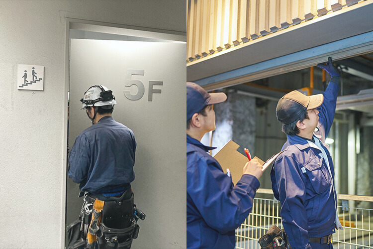 商業施設やオフィスビルのテナント入れ替え時に伴う消防設備の改修や原状回復工事などの設計・施工を行っています。これまで携わってきた多くの施工によって蓄積された知見を活かし、一級建築士等の有資格者が建物のバリエーションに合わせて最適な設計を行います。そのほか、現場確認を最小限に抑えたスムーズな見積作成が可能で、施行までのプロセスを効率化し、工事の流れを滞りなく進められる点も強みです。